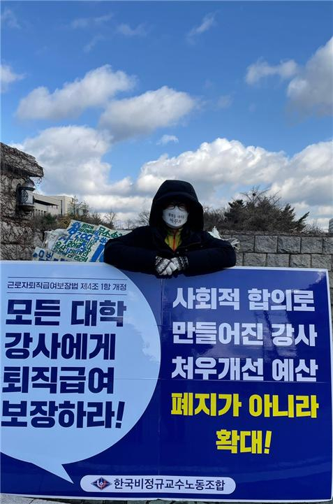 ▲국회 앞에서 농성 중인 한국비정규교수노동조합 조합원 ⓒ김진균
